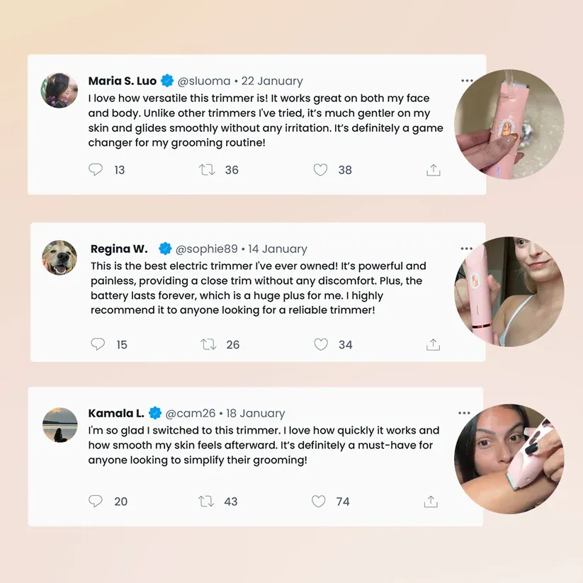 Dr. Emily Carter, a renowned dermatologist, highlights the Novavora™ 2-in-1 bikini body hair trimmer as a game-changer in personal grooming. She emphasizes its gentle titanium guard that ensures a painless experience, making it ideal for sensitive skin. Dr. Carter recommends it for its versatility and ease of use, especially for those seeking a quick and efficient grooming solution.